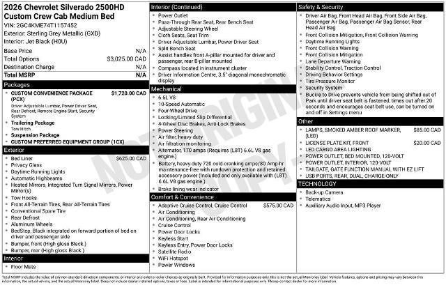 2026 Chevrolet Silverado 2500HD Custom Sterling Gray Metallic 4WD 10-Speed Automatic 6.6L V8