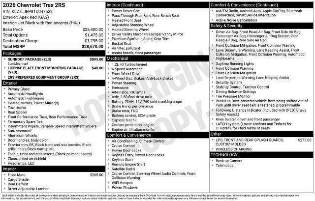 2026 Chevrolet Trax 2RS Apex Red FWD 6-Speed Automatic ECOTEC 1.2L Turbo